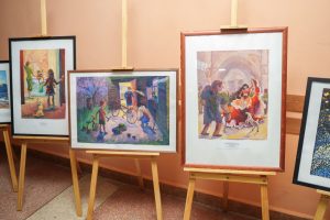 На втором этаже кипела жизнь: мастера декоративно-прикладного искусства представили свои творения на выставке-ярмарке, а желающие могли попробовать себя в росписи миниатюр, дымковских лошадок, деревянных солдатиков, а также создать свои значки «Единство в нас!». Для юных талантов работала мастерская мультипликации «Чудо-вращения».